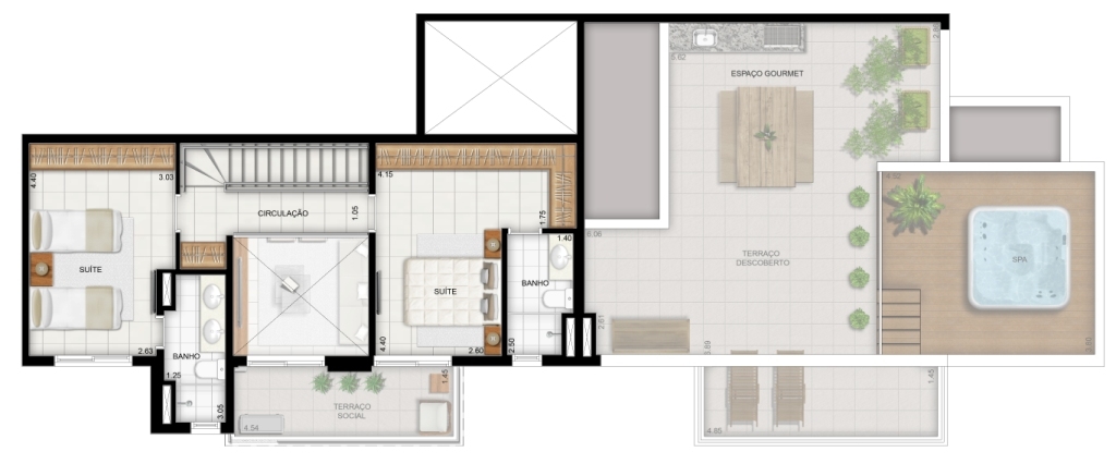 Studio de 48m² | Apartamentos de 68 a 80m² | Duplex de 86 a 115m² Área de lazer elegante, diferenciada e que traz uma série de novidades: Piscina coberta aquecida com raia de 25m, Piscina externa adulto com bar, Piscina infantil, Deck molhado, SPA, Sala de aeróbica, Fitness-ioga, Jogos juvenil, Brinquedoteca, Espaço mulher, Praça de convivência, Praça de encontro, Pomar, Quadra recreativa, Espaço de leitura, Home Office, Jogos adulto/wine bar, Espaço xadrez, Home cine, Salão de festas, Festas externo com churrasqueira, Boulevard.